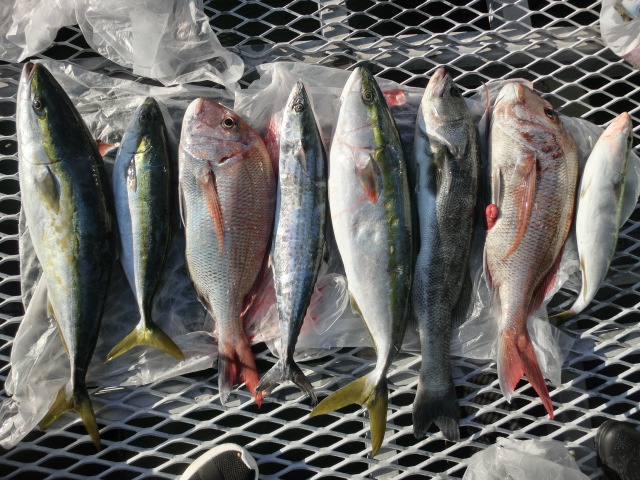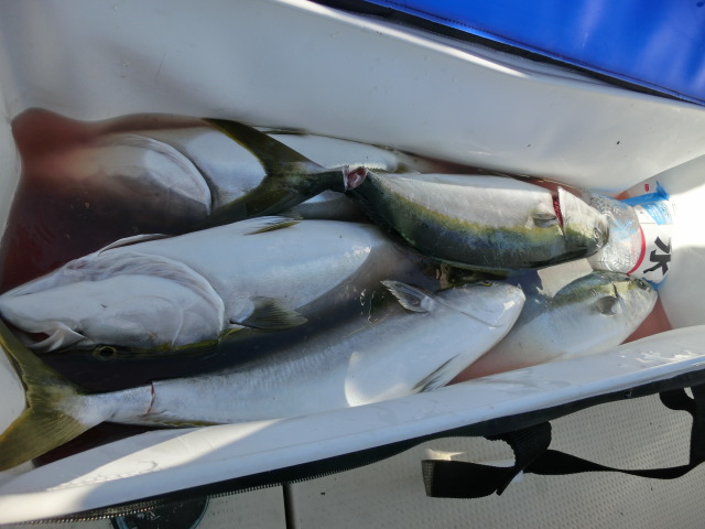 泳がせはポツリポツリでしたが、ハマチ5本取れました。